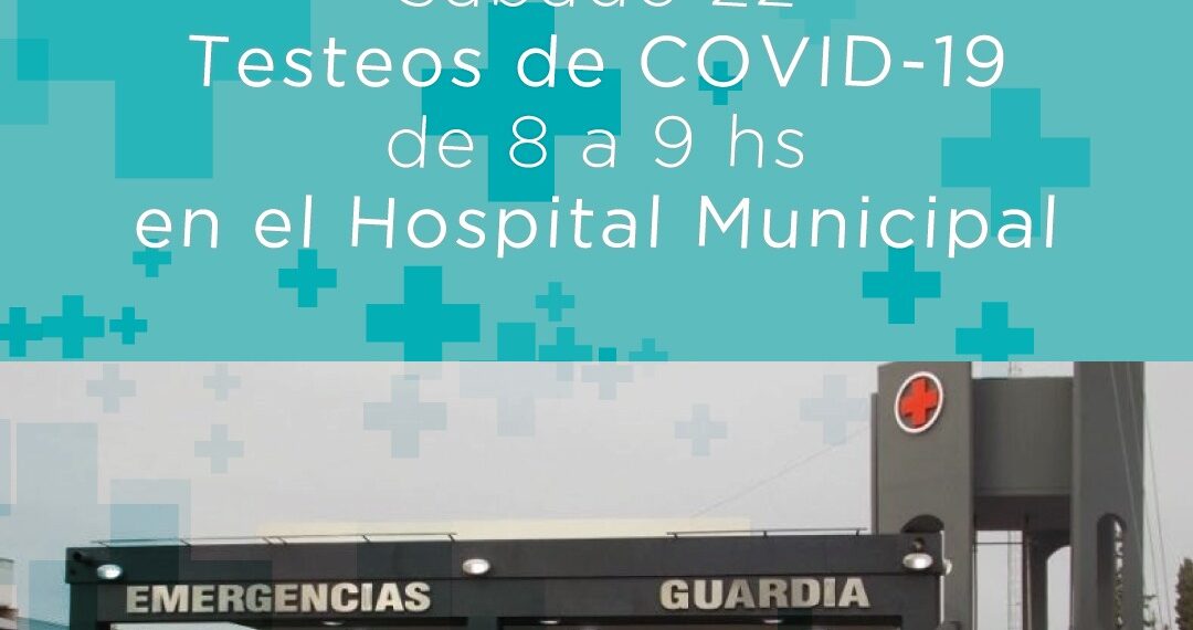 La Secretaría de Salud informa que, este sábado 22 de 8 a 9 hs, se realizarán hisopados en el Hospital Municipal ‘Dr. Alberto Castro’.