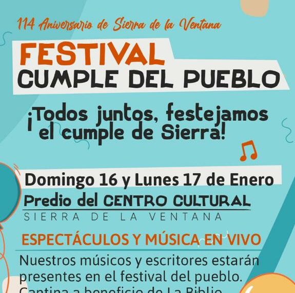 Denominado ‘Festival cumple del Pueblo’, el evento se realizará entre domingo y el lunes en el predio del Centro Cultural de la localidad, con espectáculos y música en vivo y servicio de cantina.