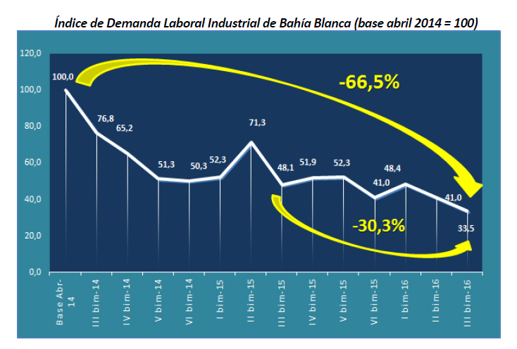 El índice de demanda laboral industrial en Bahía y la región se ubicó en 33,5 puntos