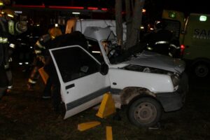 Uno de ellos se registró cerca de las 6.30 en ruta 76, kilómetro 229 a la altura de Villa Serrana La Gruta. En ese lugar una camioneta utilitario Renault express(CIX 306) conducida por Pablo Gimenez(35) de nuestra ciudad, se salió de la cinta asfáltica y terminó incrustada en un árbol.