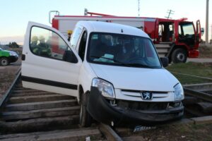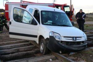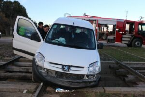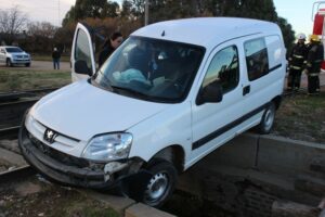 Más tarde cerca de las 9 de la mañana una camioneta peugeot partner(AB281QJ) propiedad de la familia Alric quedó sobre las vías del ferrocarril en sector de alcantarillas y avenida San Martín. Se activaron los air bag del vehículo y una joven fue trasladada al hospital municipal para su atención, según informaron. Retuvieron además la camioneta por infracción a la Ley 24449 y la causa estará a cargo del Juzgado de Faltas local.