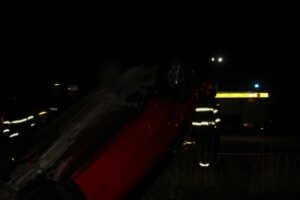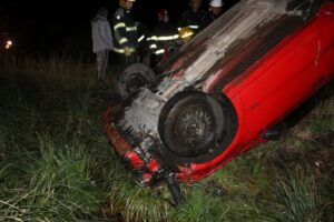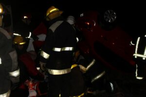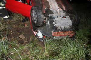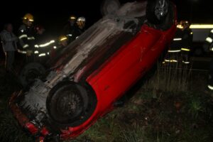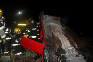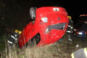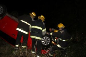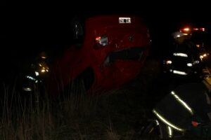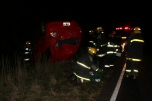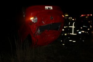 Por causas que se tratan de establecer volcó un volkswagen gol trend 5 puertas, color rojo dominio NTI361 conducido por Ruben Seloné (28) domiciliado en la ciudad de Pigué.
