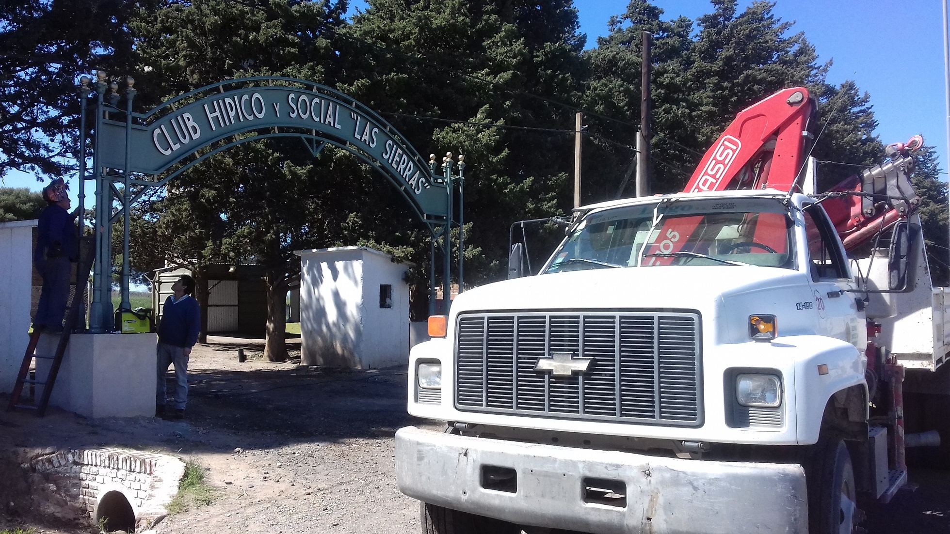 El cartel, se colocó en la mañana del sábado, con la colaboración de la grúa y personal de la Cooperativa Eléctrica Limitada de Tornquist, el herrero Enrique Moyano y personal de la institución, entre otros.