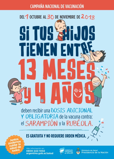 La misma se llevará a cabo hasta el 30 de noviembre, en todo el país, y deberán ser vacunados todos los chicos que tengan desde los 13meses de edad, hasta los 4 años, 11 meses y 29 días, es decir, menores de 5 años.