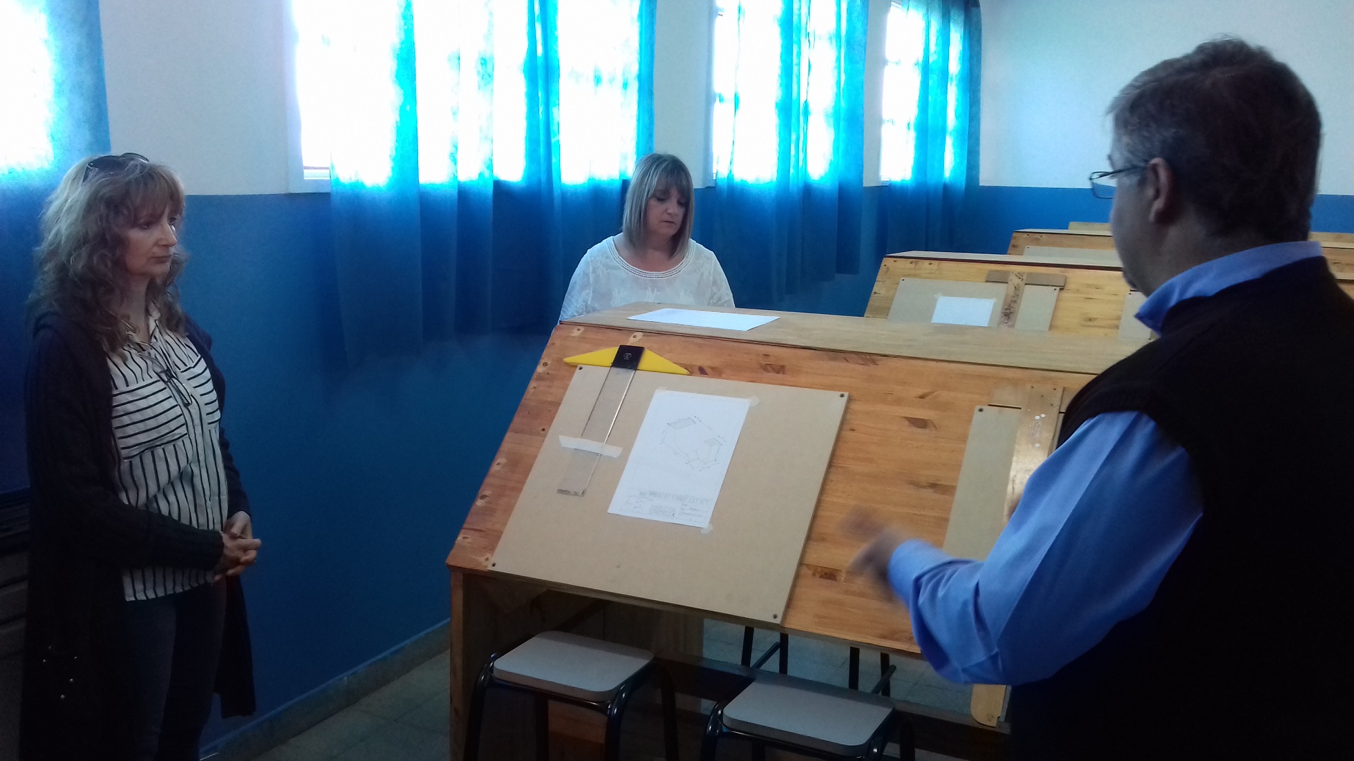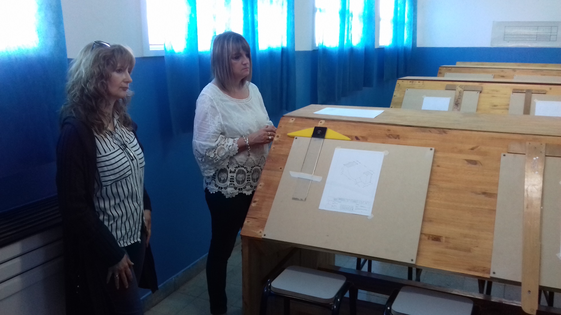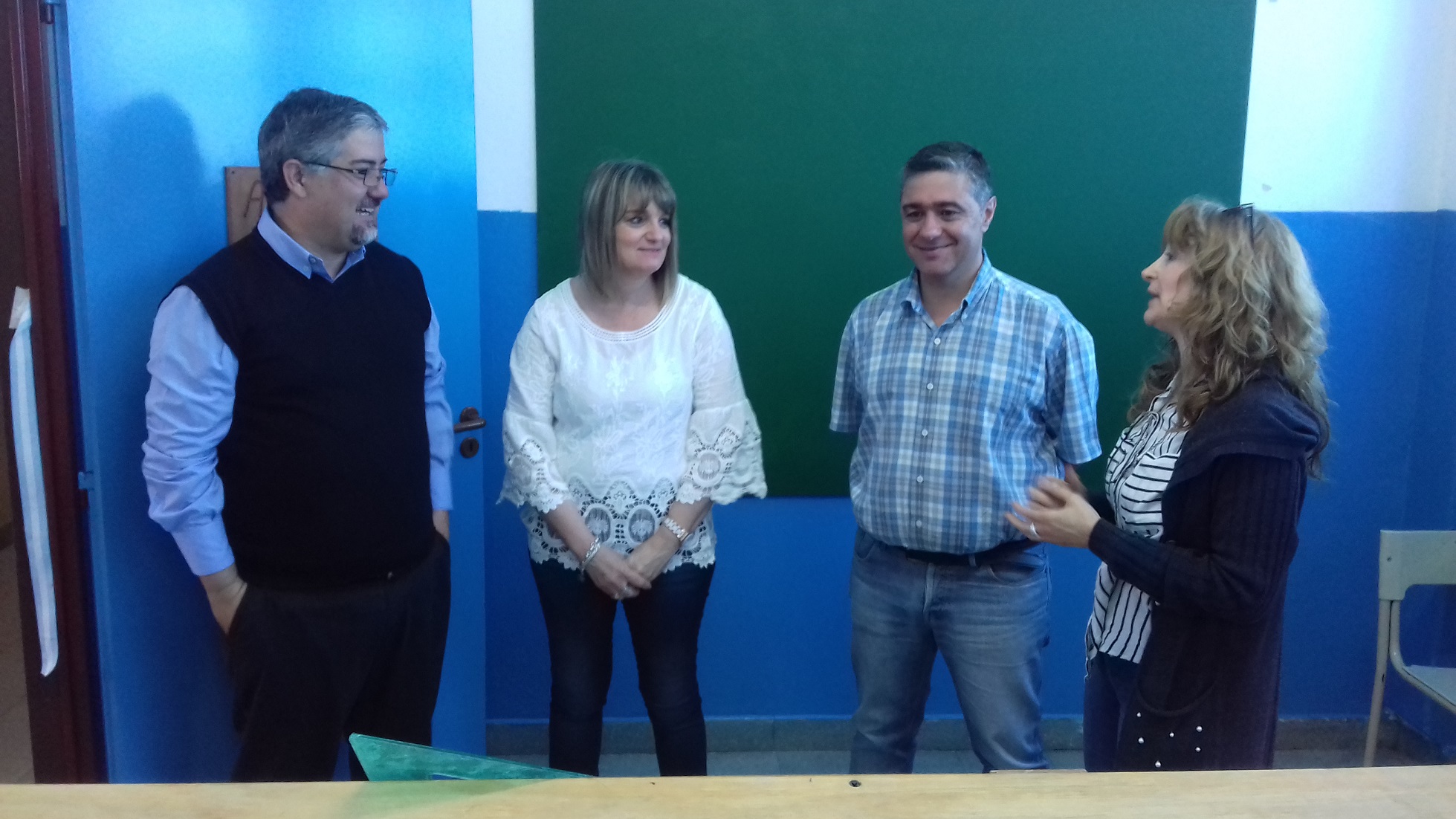 El director de la EEST N° 1, Luis Quintana, junto al inspector de Educación Técnica de la Región 23, Fabián Maurer; la inspectora Jefe Distrital, María Rosa González y la inspectora de Primaria, Patricia Larrainzar, fueron los responsables de inaugurar la Expo Técnica y la flamante aula de Dibujo Tecnológico.