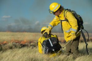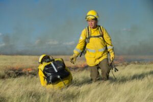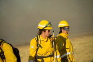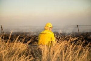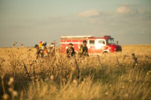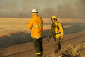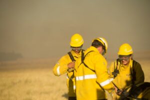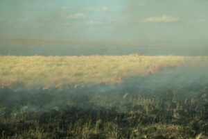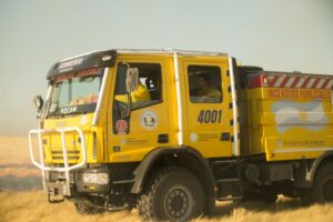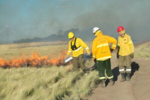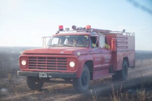 Durante varias horas trabajaron los bomberos voluntarios de Tornquist para controlar y extinguir un importante incendio de pastos registrado este lunes en el establecimiento ‘Los Indios’, hacia la zona Oeste del distrito.
