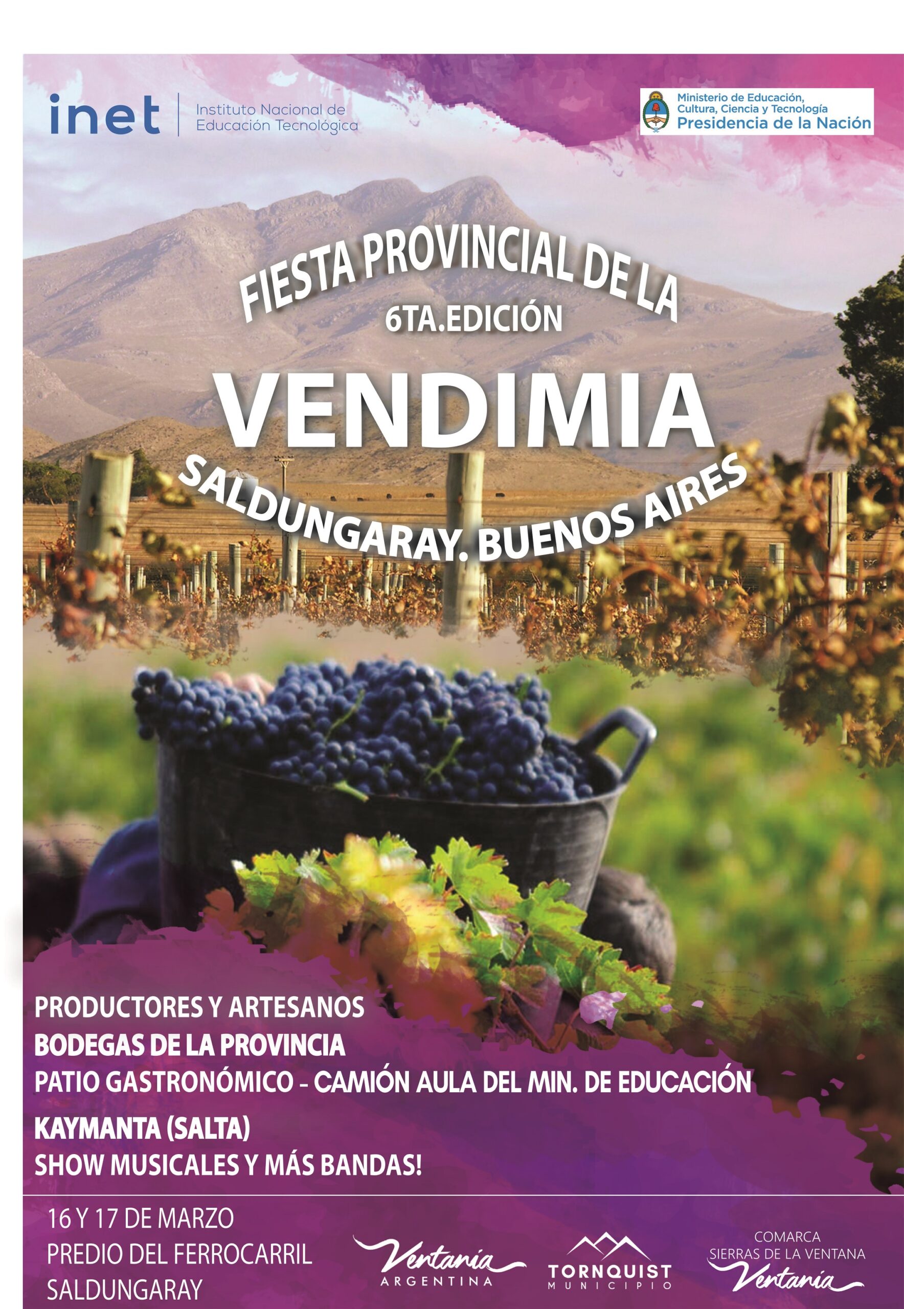 La 6ta edición de la FIESTA DE LA VENDIMIA, tendrá lugar en la localidad de Saldungaray, en el Predio del Ferrocarril, los días 16 y 17 de marzo.