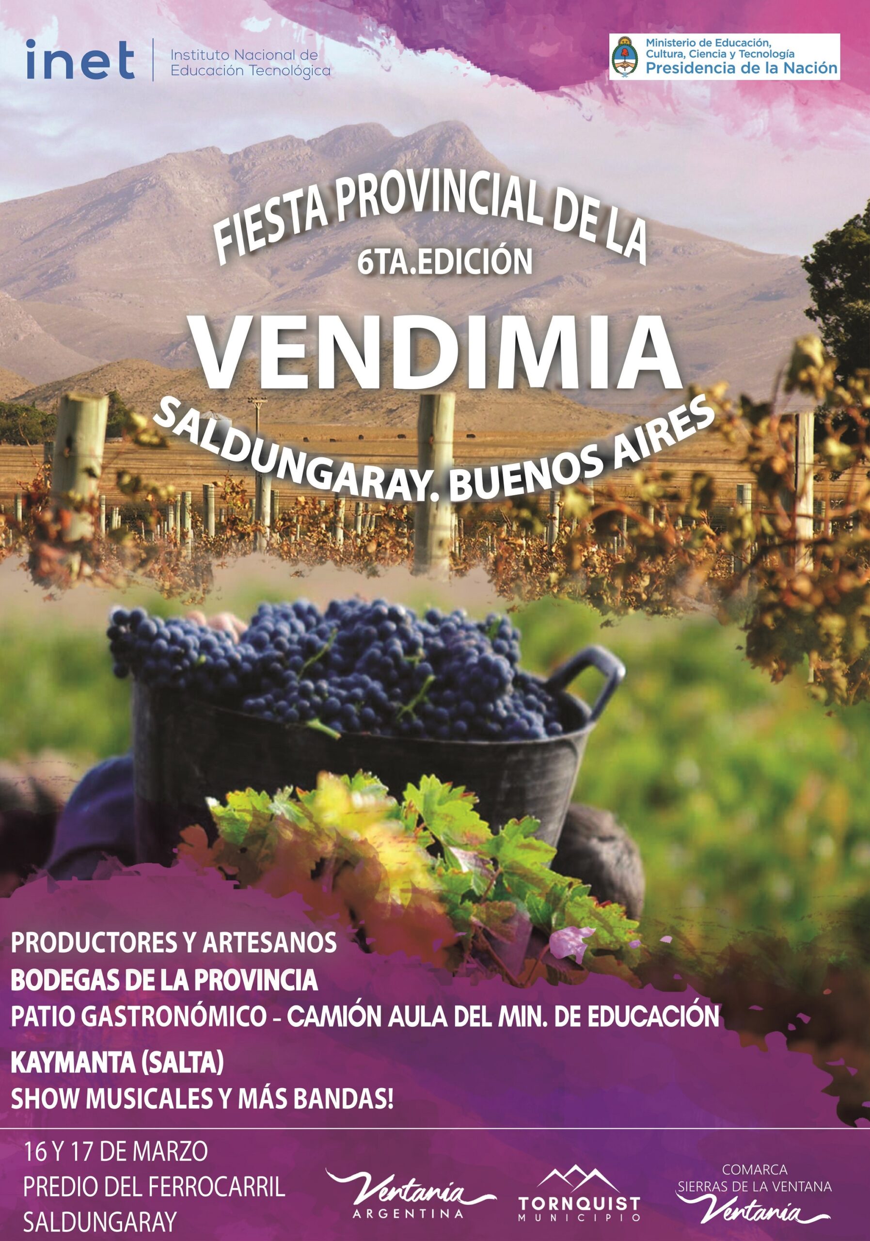 La 6ta edición de la FIESTA DE LA VENDIMIA, tendrá lugar este 16 y 17 de marzo, en la localidad de Saldungaray, en el Predio del Ferrocarril.