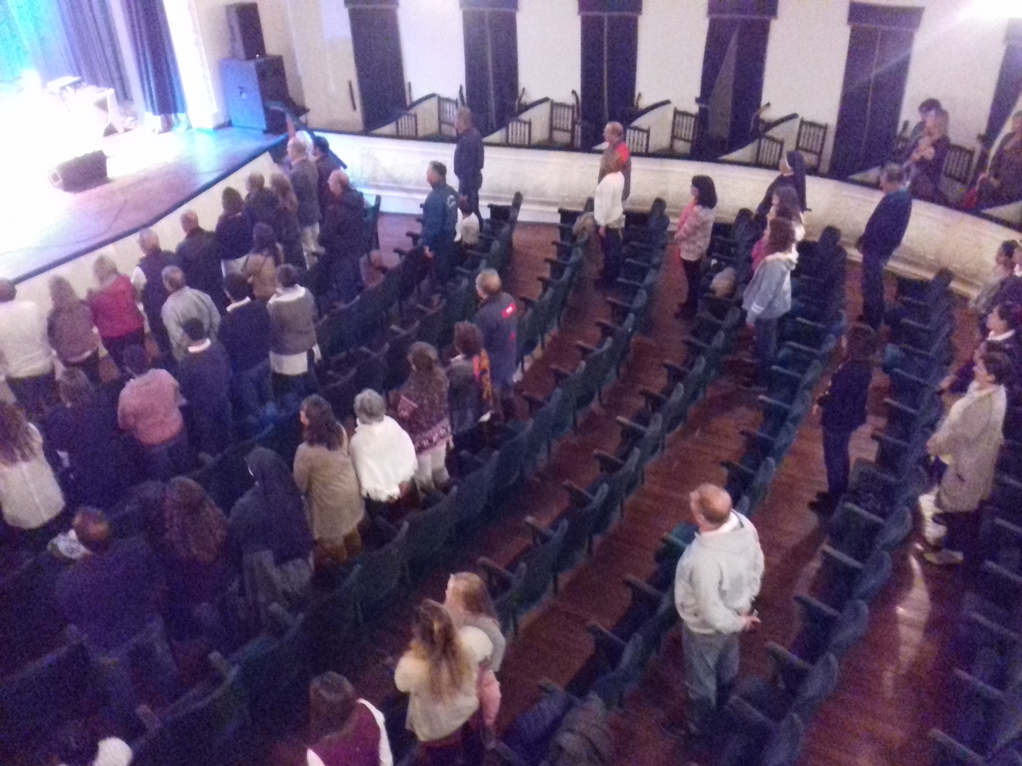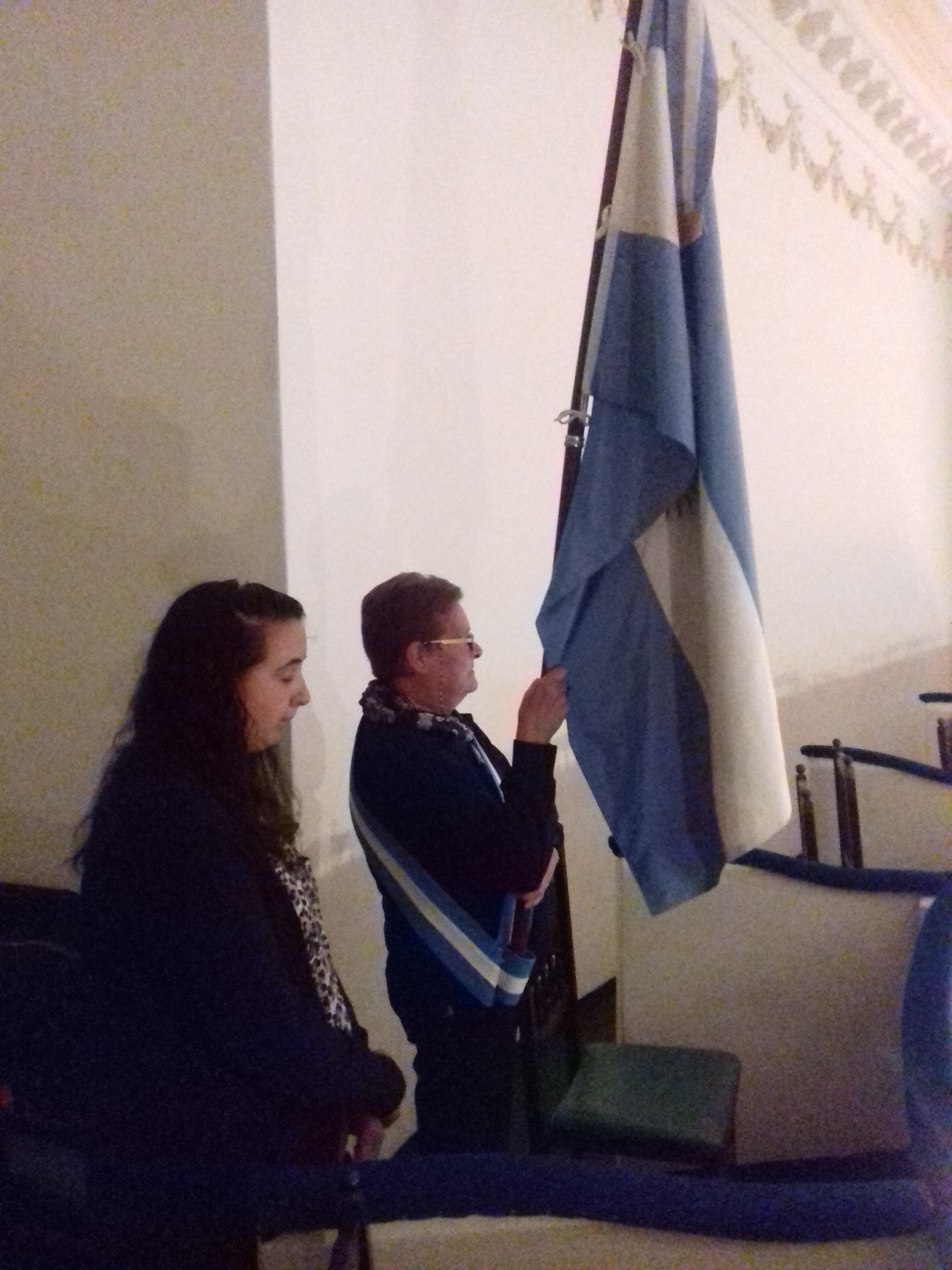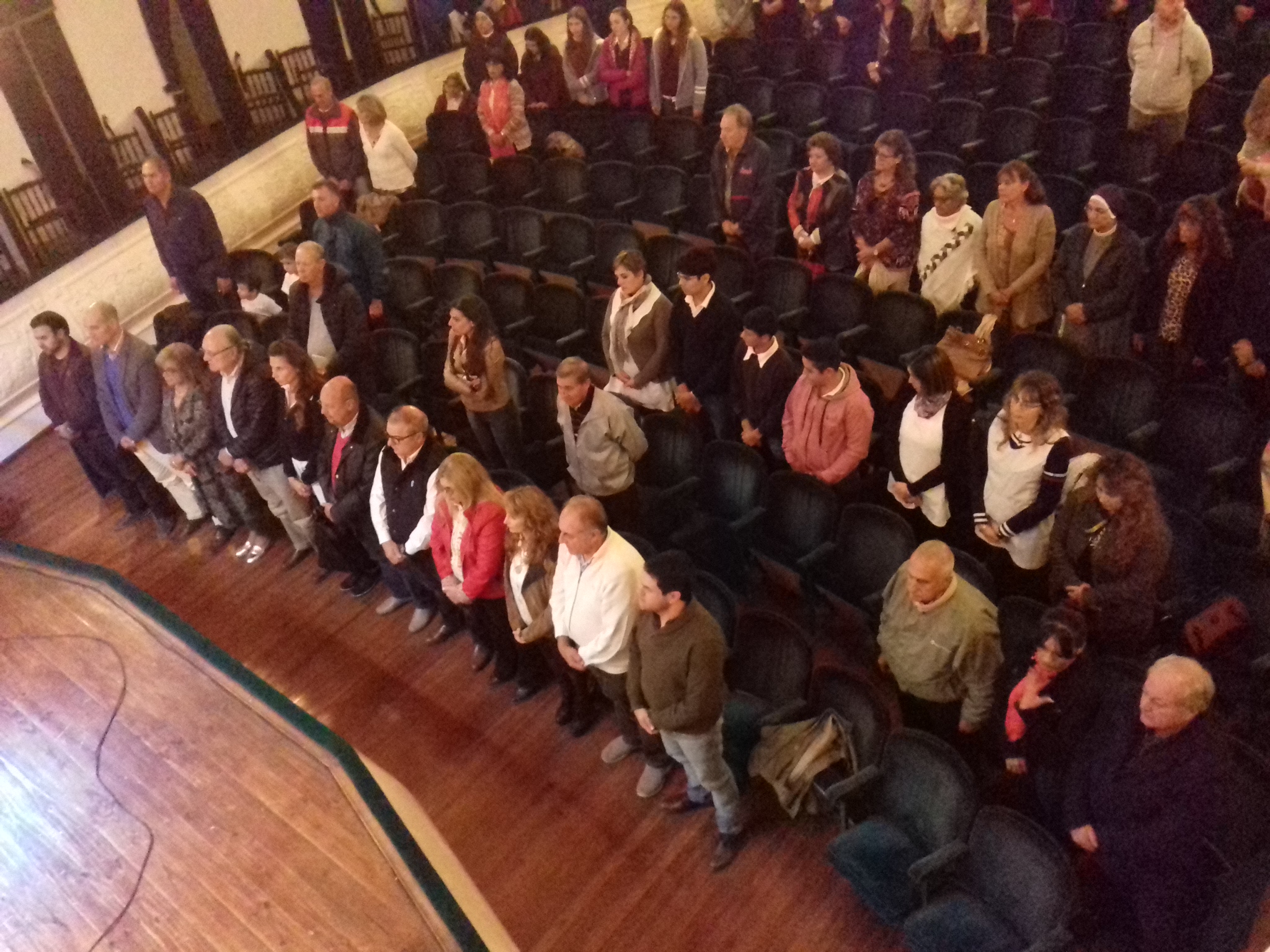 Con la presencia del intendente Sergio Bordoni, integrantes del Departamento Ejecutivo; ediles; miembros del Consejo Escolar; establecimientos educativos; instituciones intermedias y vecinos de la comunidad, se llevó a cabo el acto protocolar por el 43º aniversario del golpe militar, en el teatro municipal Rodolfo Funke.