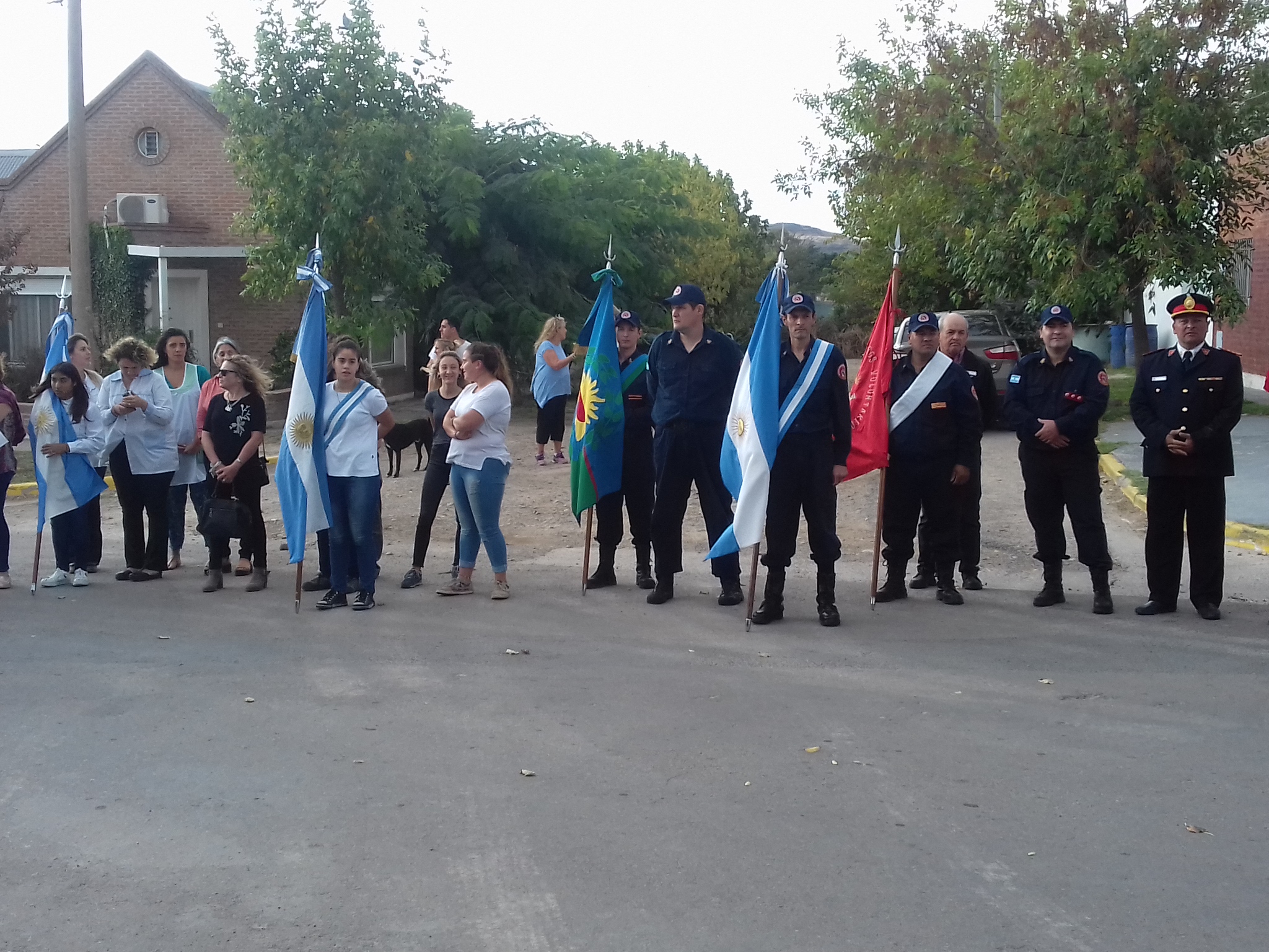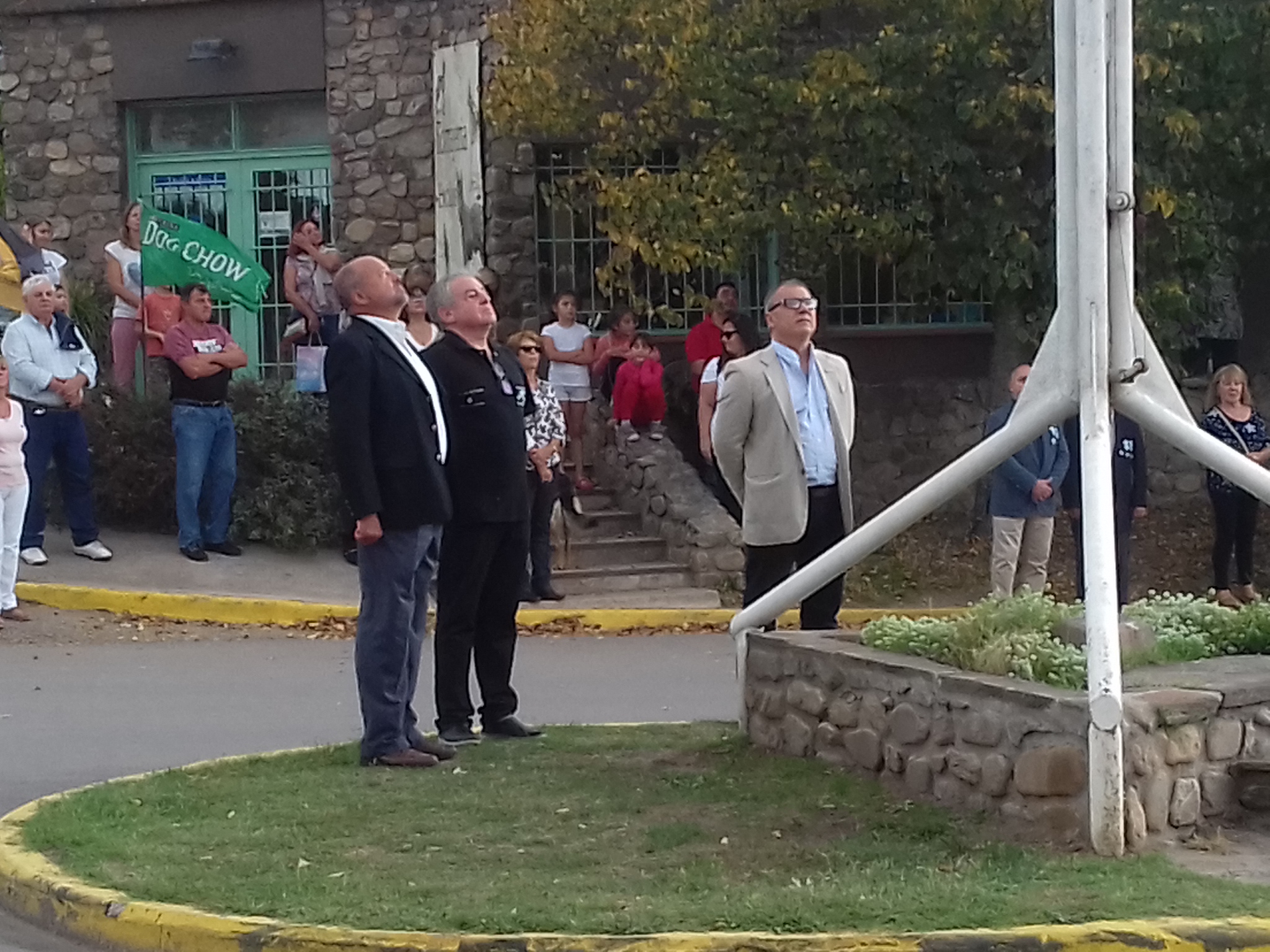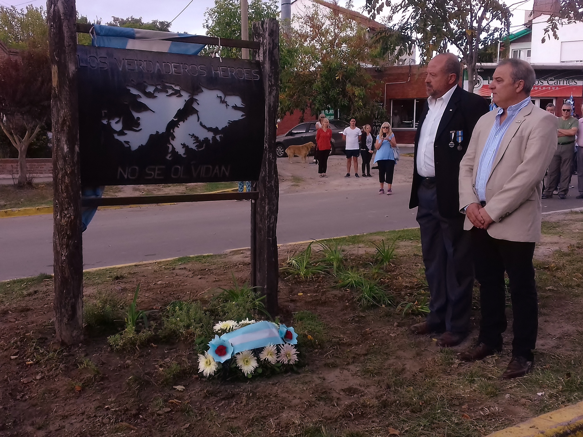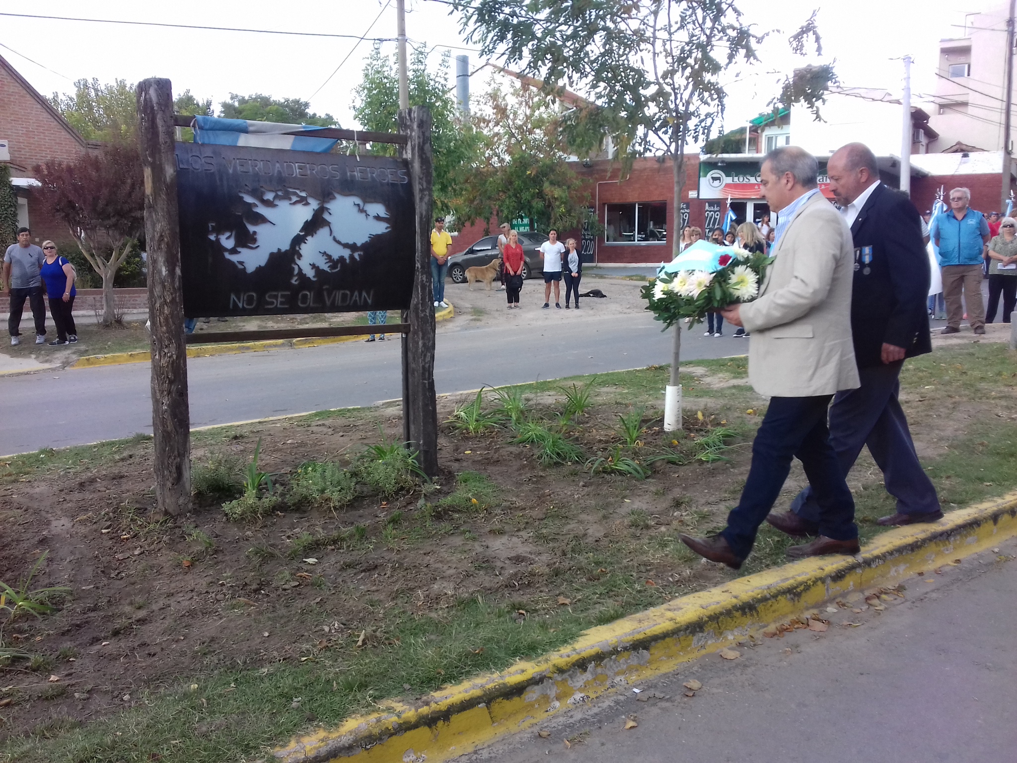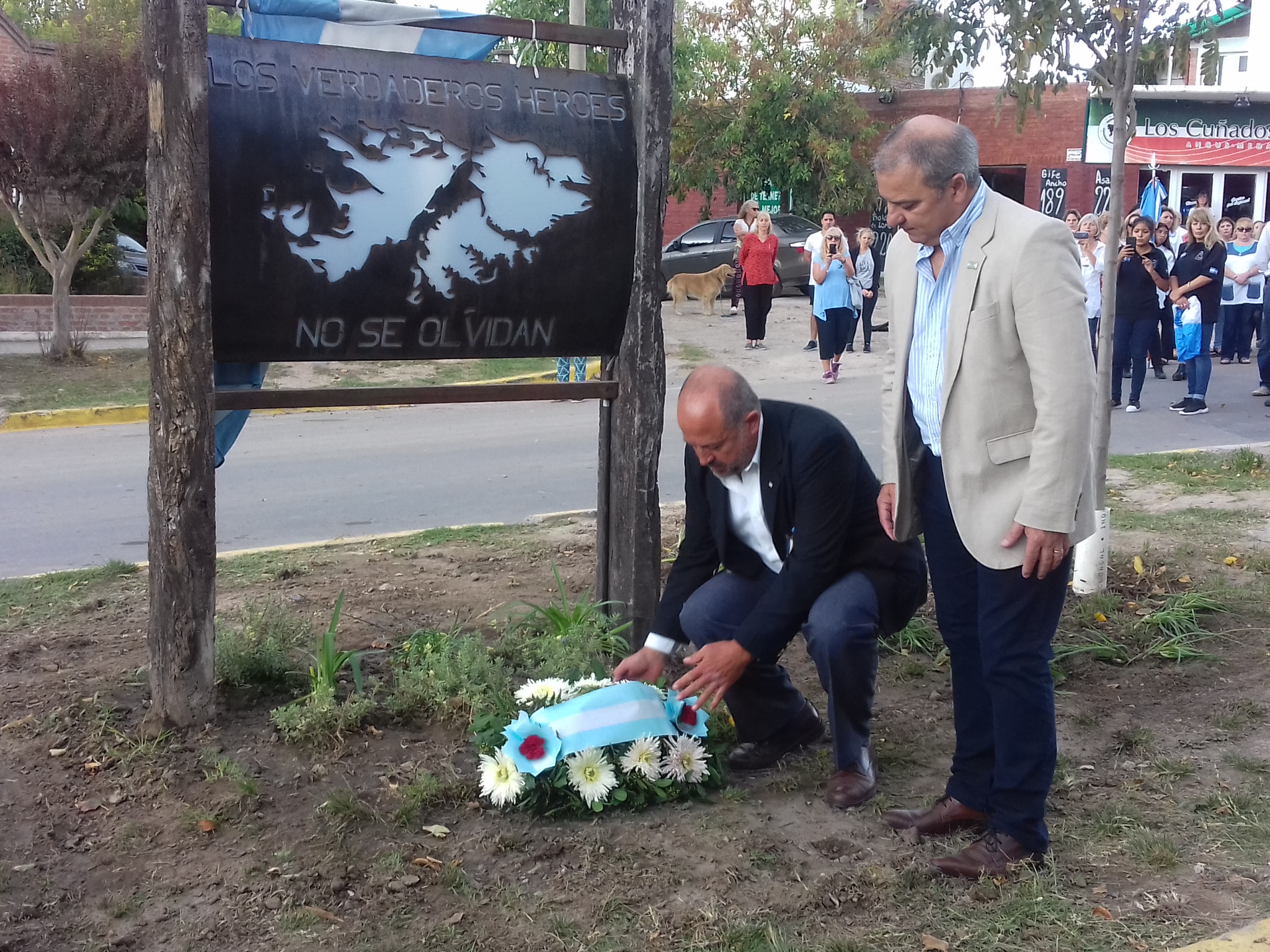 Participaron del acto el intendente Sergio Bordoni; integrantes del Departamento Ejecutivo; miembros del Concejo Deliberante y Consejo Escolar; ex-combatientes; instituciones intermedias y vecinos de la localidad serrana.