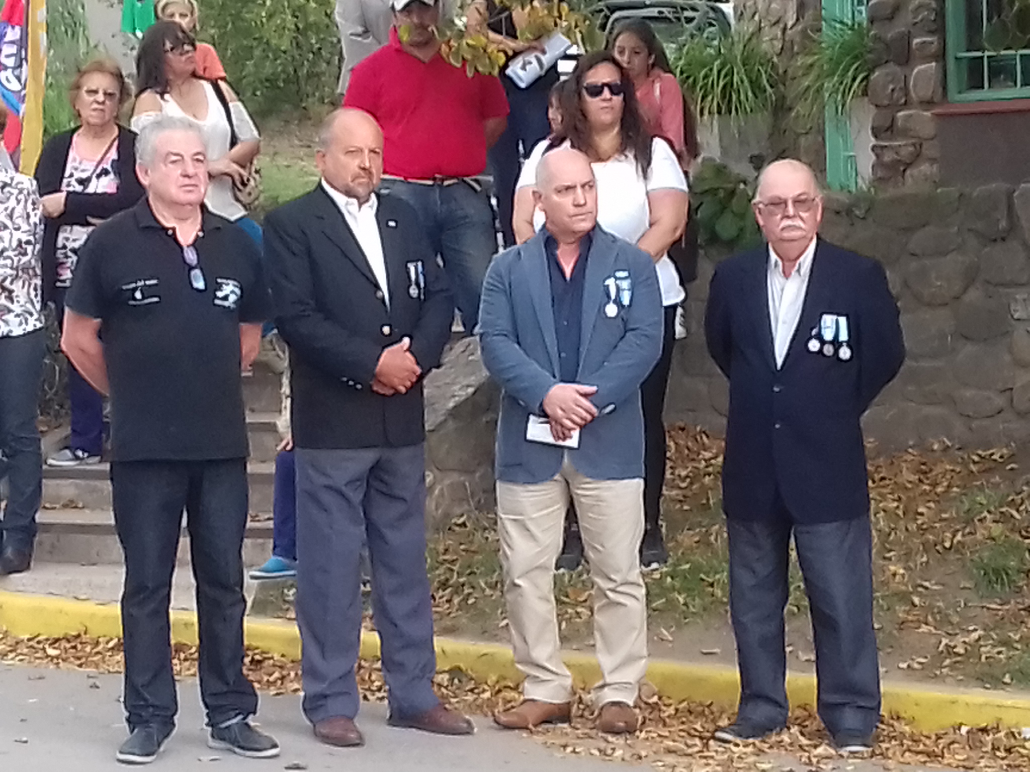 Participaron del acto el intendente Sergio Bordoni; integrantes del Departamento Ejecutivo; miembros del Concejo Deliberante y Consejo Escolar; ex-combatientes; instituciones intermedias y vecinos de la localidad serrana.