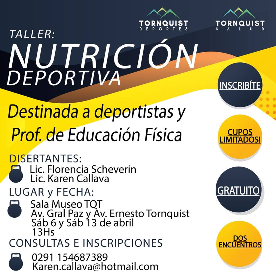 Una importante charla-taller sobre nutrición en el deporte, se llevará a cabo el 6 y 13 de abril, a partir de las 13, en el salón del Museo TQT.