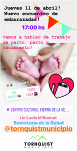 El encuentro está programado para las 17.00 en el Centro Cultural de Sierra de la Ventana. En esta oportunidad la temática será el trabajo de parto, parto y nacimiento.