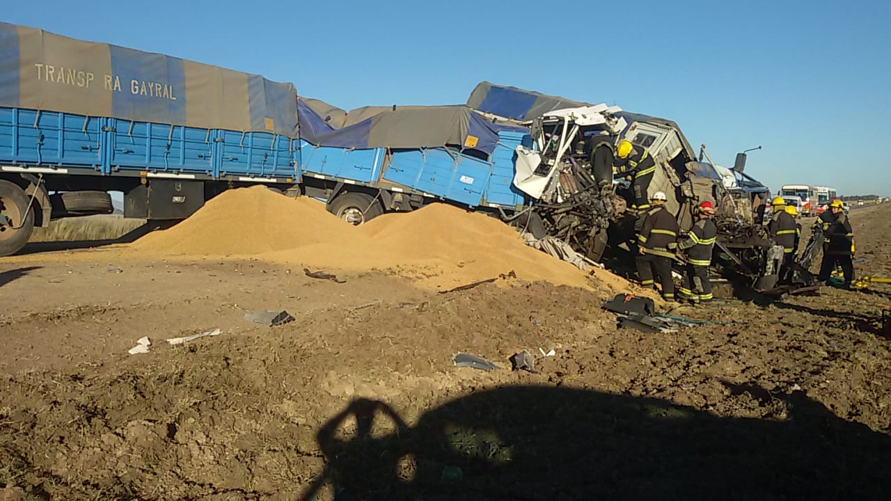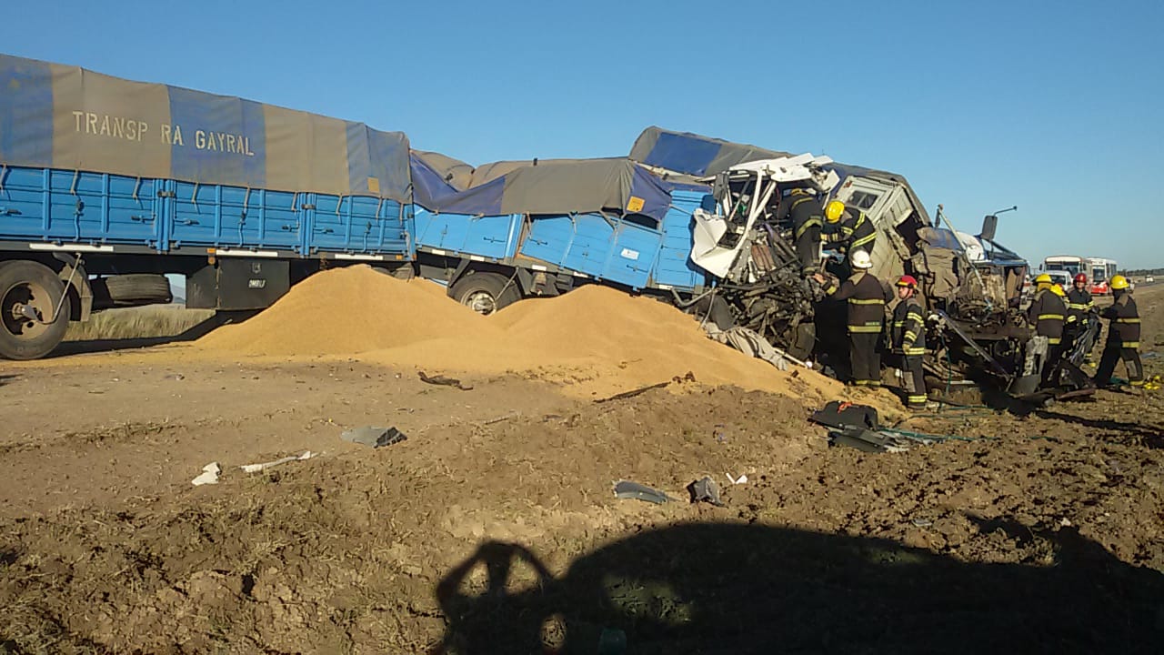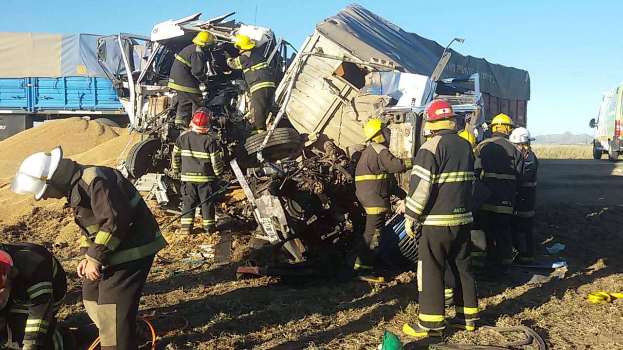 Dos heridos de diferente consideración fue el saldo del violento choque de dos camiones, hoy a las 16.20, en el kilómetro 77.4 de la Ruta Nacional 33.