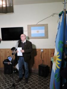 Luego de la entrada de banderas y de entonar el Himno Nacional Argentino, el Inspector de la Modalidad Técnico Profesional y Agropecuaria, Guillermo Gandrup fue el encargado de brindar las palabras alusivas a la fecha, en representación de la Inspectora jefe distrital. Más tarde, Llayle Tiznado Pincheiras, directora del establecimiento educativo, continúo con la alocución.