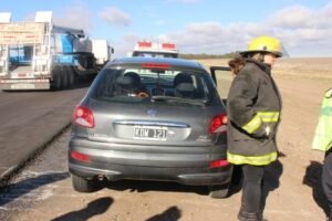 Ocurrió despues del mediodia en el km 80 dela ruta Nacional 33 y fue protagonizado por un vehiculo Peugeot 207 (KDW121) conducido por Delfina Sanchez (72), oriunda de la ciudad de Bahía Blanca quien envistió en la parte trasera de un camión que desarrollaba tareas en la obra de repavimentación que realiza la empresa Chediac. Afortunadamente la conductora no sufrio heridas y solo hubo daños materiales en el vehículo menor. En el lugar se informó que en el momento del impacto un operario de la empresa de asfalto realizaba trabajos en la parte posterior del camión y salvó su vida por milagro. Intervino la Policía de Saavedra y Dufaur, Bomberos Voluntarios de Saavedra, Dufaur y Tornquist y se desplazaron hasta el lugar ambulancias del SAME Tornquist y de la localidad de Saavedra.