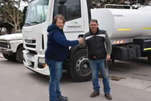 En el día de hoy, el intendente municipal Sergio Bordoni hizo entrega de la llave del camión regador que será destinado a la localidad de Saldungaray.