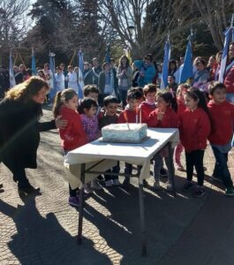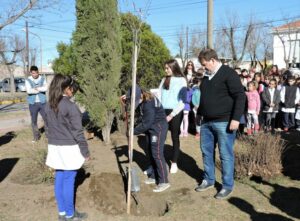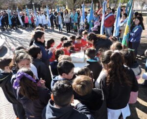 Posteriormente, se entonaron Aurora y el himno nacional. Además, niños y niñas de la Escuela N° 2 y el Instituto Fortín Pavón las interpretaron en lenguaje de señas. Además, se plantó un árbol en la plaza.