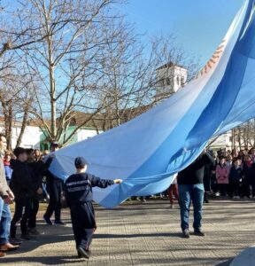 Todo comenzó con el traslado del pabellón nacional desde la delegación municipal como ya es costumbre, con la presencia del intendente de Tornquist, Sergio Bordoni, y el delegado municipal Darío Cardoso, para luego izar la bandera en el mástil patrio.