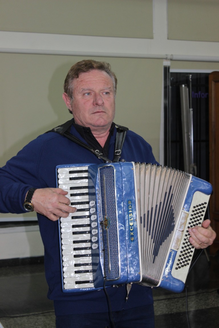 La noche comenzó a puro tango con la vos de Carlos Porcel, siguiendo el cálido sonido del acordeón de la mano del aartista Carlos Polak.
