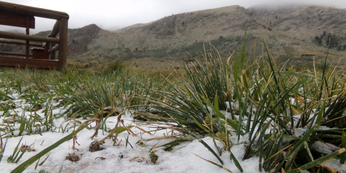 Los habitantes del distrito que, diariamente, transitan la ruta 76, se vieron sorprendidos por el manto blanco en la cima de los cerros y también en algunas banquinas y campos aledaños.