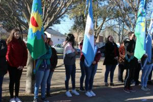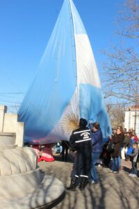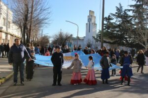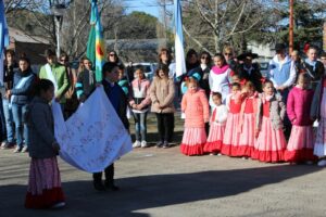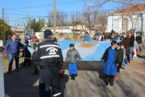 El tradicional traslado de la bandera hasta el mástil enclavado en la Plaza Independencia marcó el inicio en una jornada climáticamente fría, pero el sentimiento de los “saldungarences” puede mas que cualquier contingencia climática.