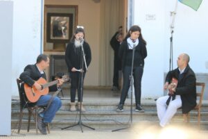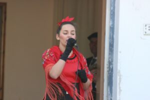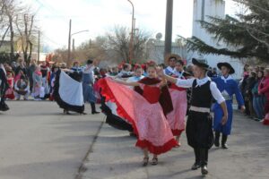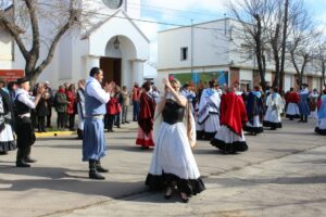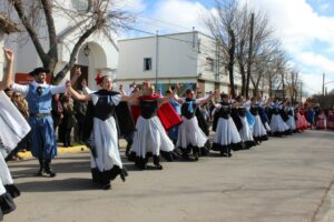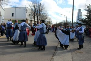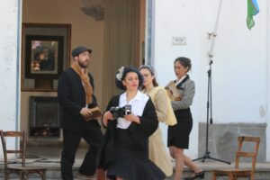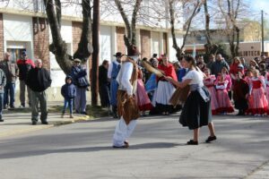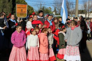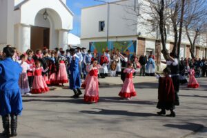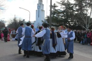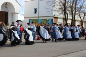Mas tarde, frente a la delegación municipal se montó un escenario donde, al menos por varios minutos, se revivieron fragmentos de la historia del pueblo con música y bailes recorriendo distintas épocas.