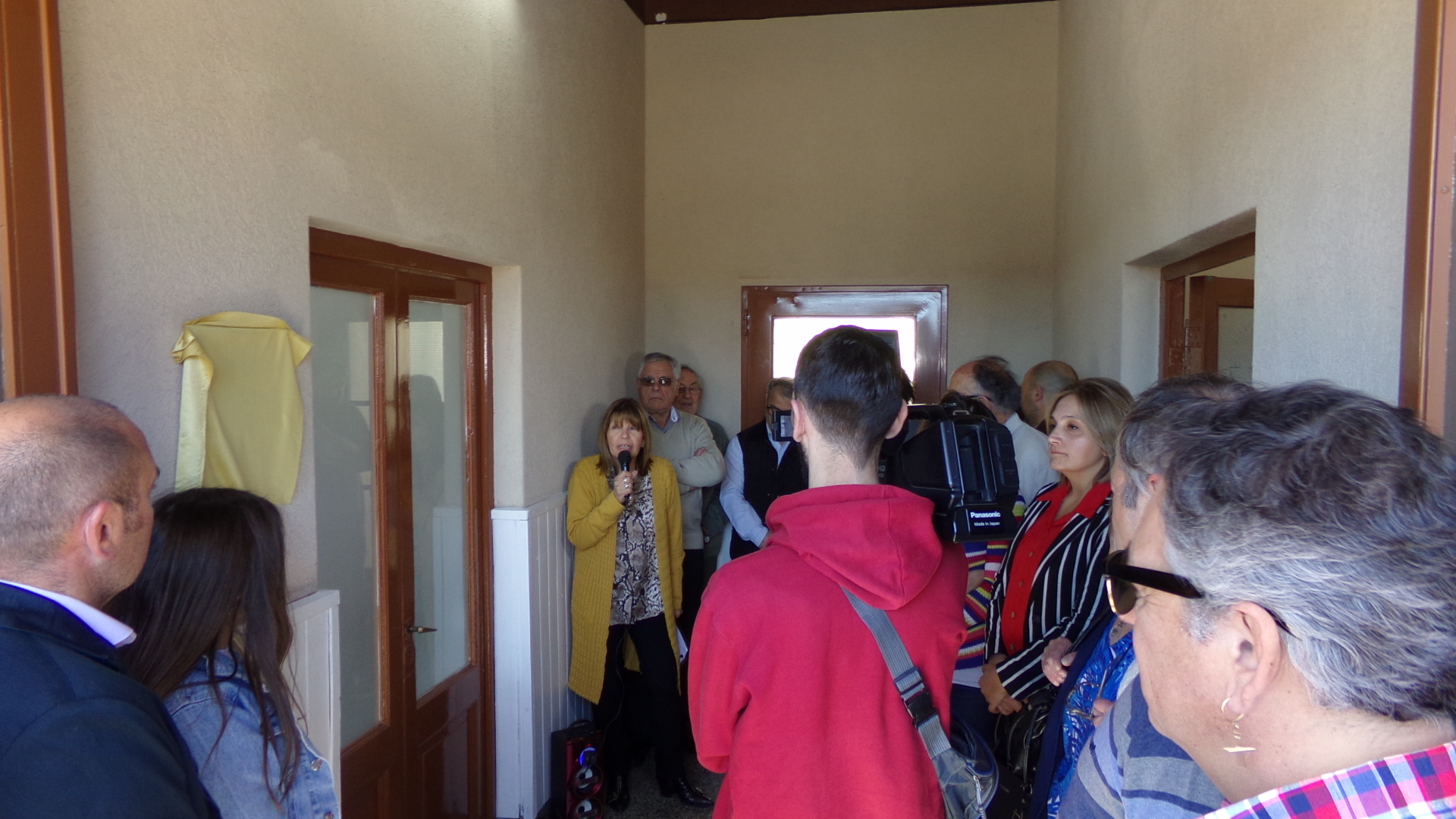 El presidente de la comisión directiva de la Sociedad Italiana, Antonio Mancinelli, junto a Nora Mazzarini (esposa de Nino) y el intendente Sergio Bordoni, fueron los responsables de descubrir la placa que identifica a la reacondicionada dependencia de la institución.