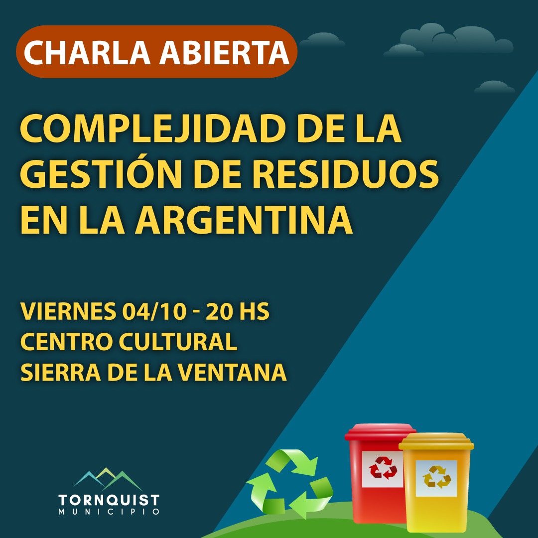 La Secretaría de Producción, Comercio e Industria invita a la comunidad a la charla sobre “Complejidad de la gestión de residuos en la Argentina”, que se llevará acabo el viernes 4 de octubre, a las 20.00 hs. en el Centro Cultural.