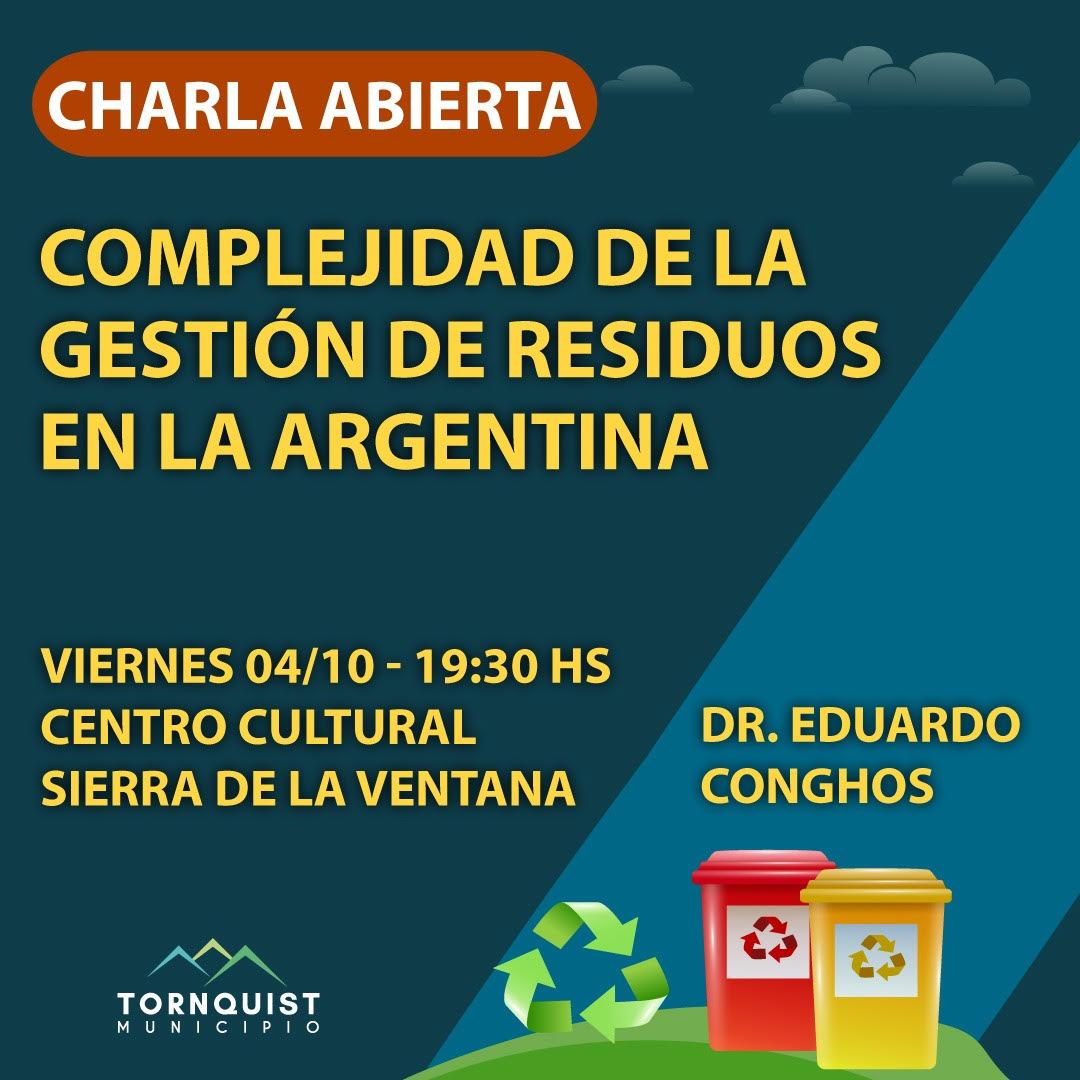 La Secretaría de Producción, Comercio e Industria invita a la comunidad a la charla sobre “Complejidad de la gestión de residuos en la Argentina”, que se llevará acabo el viernes 4 de octubre, a las 20.00 hs. en el Centro Cultural.