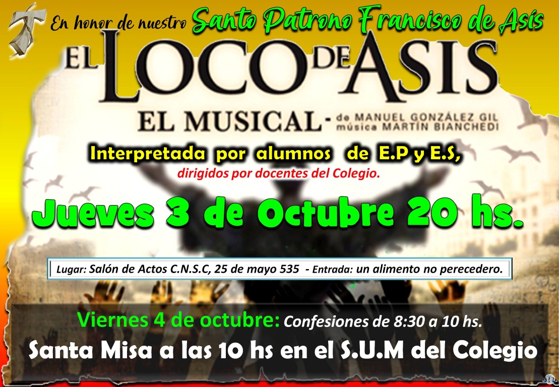 Será este jueves 3 de octubre en honor al Santo Patrono Francisco de Asis y será interpretada por alumnos de los niveles primario y secundario dirigidos por docentes del colegio.