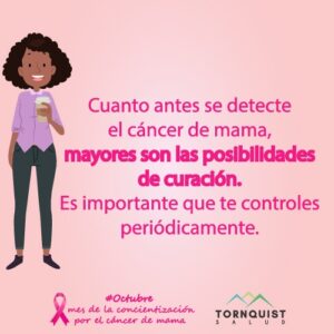 Es importante recordar, que el cáncer de mama es una enfermedad causada por la multiplicación anormal de células de la glándula mamaria, que forma un tumor maligno; y puede tener cura, si es detectado en sus inicios. Por tal motivo, se recomienda, realizar una mamografía a partir de los 35 años, y en caso, de contar con antecedentes familiares.
