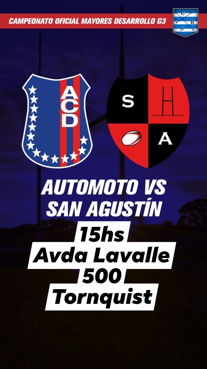 El encuentro comenzará a las 15 y se desarrollará en el predio de Avenida Lavalle al 500, donde el equipo de rugby del Automoto Club Deportivo recibirá este domingo a San Agustín de Laprida, en el marco del Campeonato Oficial de Mayores Desarrollo G3.