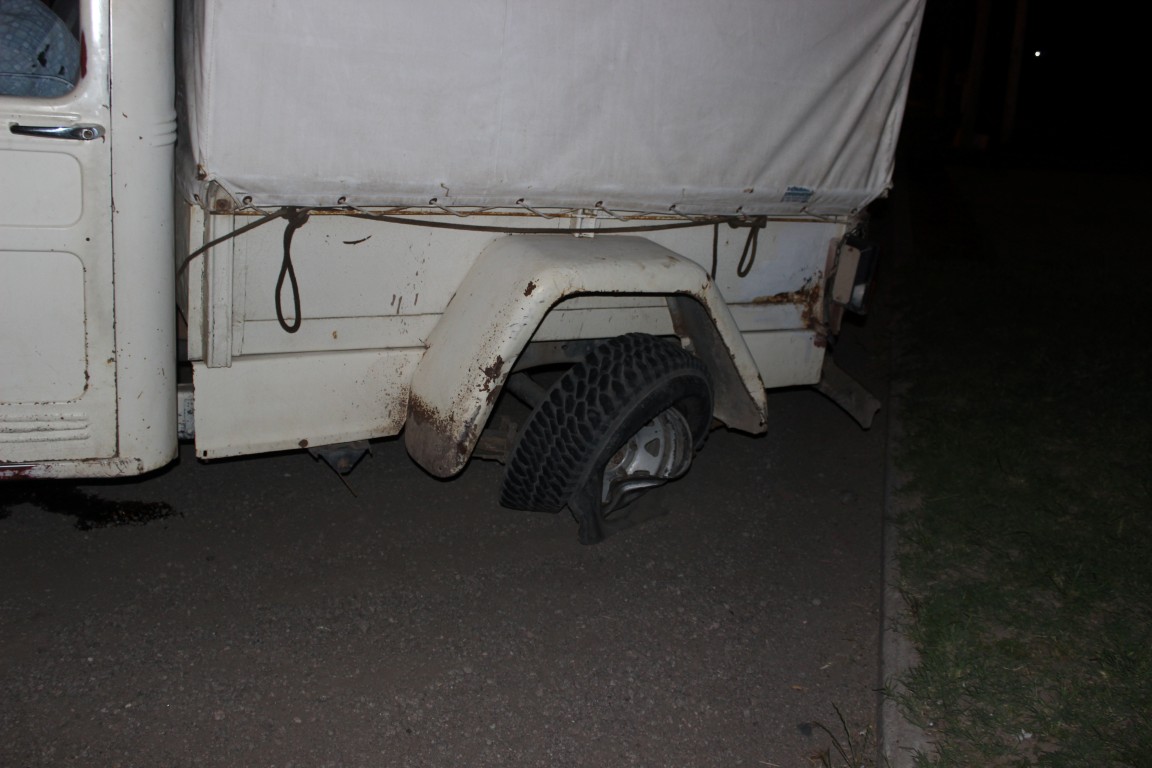 Por el golpe, el segundo vehículo terminó con la rueda delantera izquierda deteriorada.