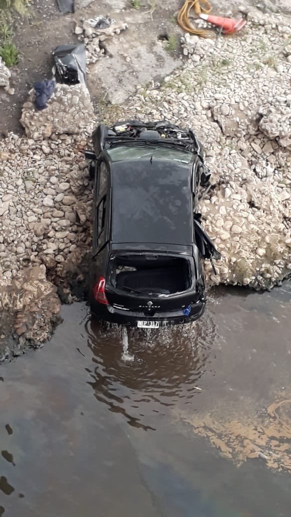 Luego de dos horas de trabajo, con el apoyo de maquinarias y hombres del cuartel de bomberos de Saldungaray, se pudo retirar el Renault Sandero que se había precipitado al agua en la víspera, con cuatro ocupantes a bordo.