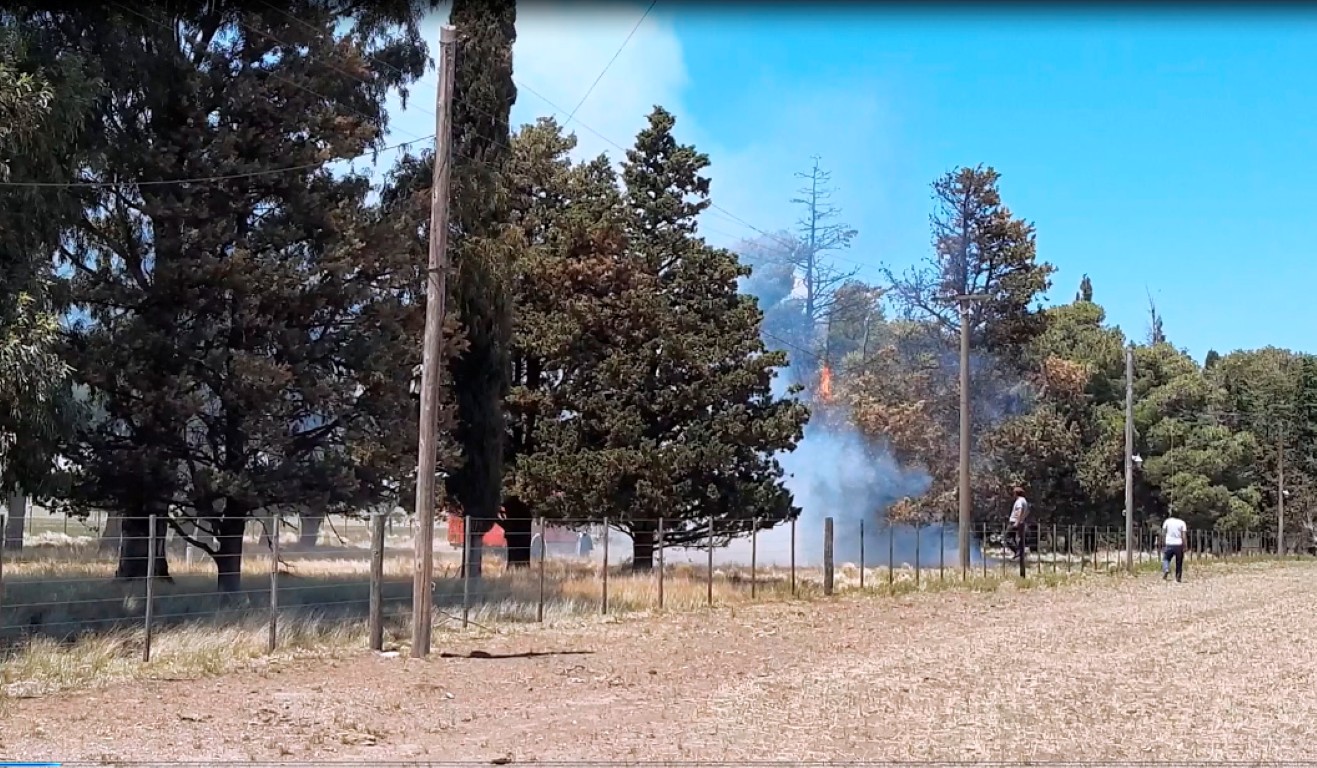 Los bomberos de Tornquist fueron convocados alrededor de 12:30 por un incendio de un pino en Haras Maguill.