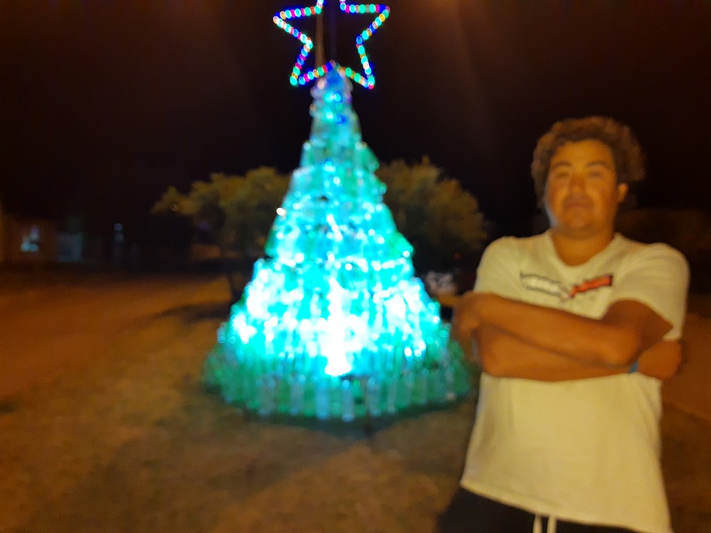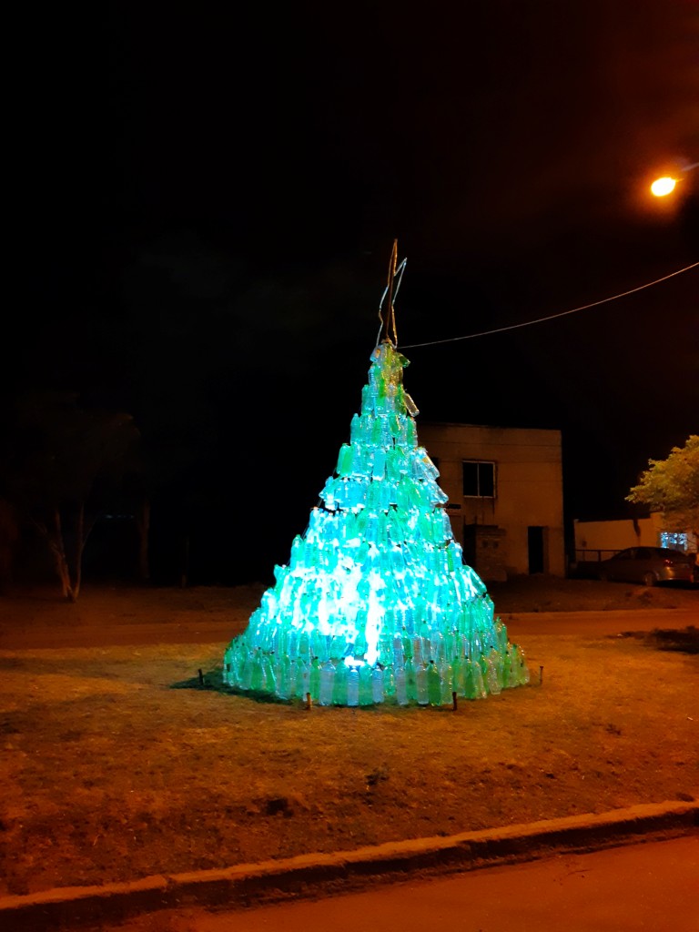 El Arbolito de Navidad realizado en Independencia casi esquina 12 de Octubre fue construido con botellas para reciclar. Gustavo Salazar fue uno de los principales impulsores de la idea que los propios vecinos se encargaron de realizar.