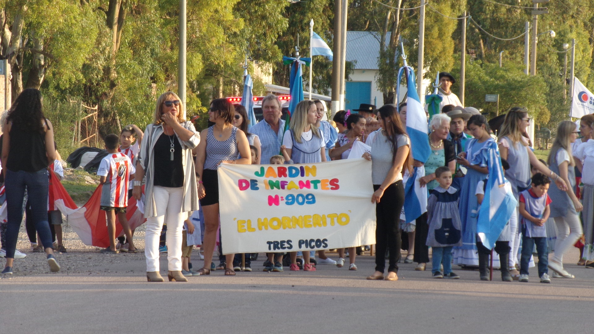 Durante el acto, hicieron uso de la palabra el intendente Bordoni y el delegado de Tres Picos, Ricardo Amer, Luego, autoridades de la localidad reconocieron a dos vecinos comprometidos con las instituciones del lugar.