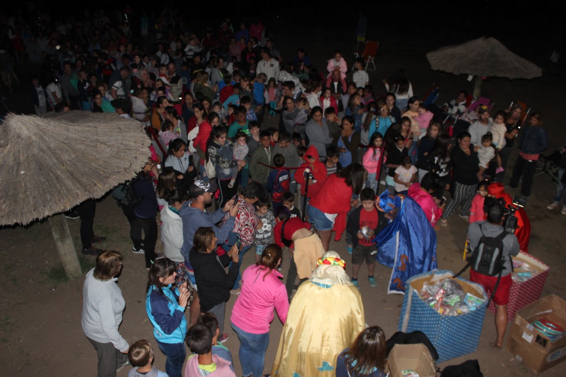 A todo esto la lancha que transportaba a los deseados soberanos ya había anunciado su partida rumbo a la playa donde una muchedumbre estaba a la expectativa (fue récord de visitantes y de reparto de juguetes)… y sucedió con el telón nocturno de fondo donde se perfilaban las siluetas de los tres.