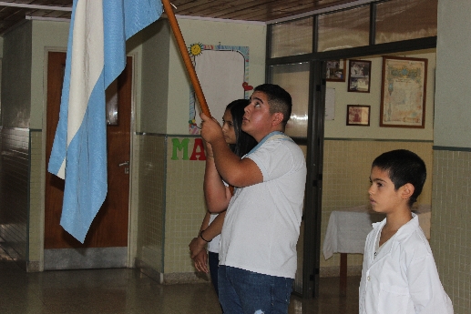 Para dar inicio al acto y acompañados por un caluroso aplauso fueron recibidas las banderaas de ceremonia portada por el abanderado Diego Cabrera y los escoltas Magali Aguado y Lautaro Braun.