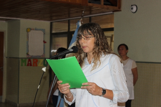 La Directora del Establecimiento Profesora Mariela Codutti dio la bienvenida a los presentes y luego la Inspectora Jefe Distrital profesora María Rosa Gonzalez se refirió al inicio del nuevo ciclo invitando a mantener vigente, como cada año, el compromiso de la familia educativa.