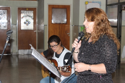 Luego del retiro de las banderas ceremonia se pudo disfrutar de la interpretación de la canción “Brindis” de Soledad Pastoruti por Ana Da Costa acompañada en guitarra por la docente Eliana Chuliver.