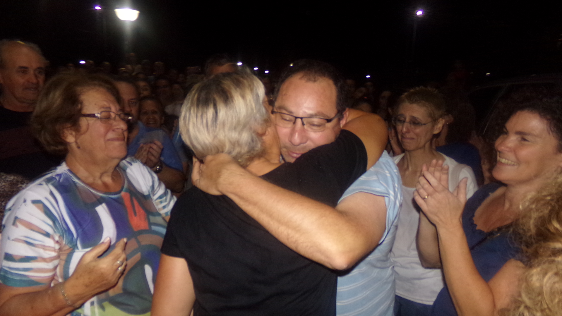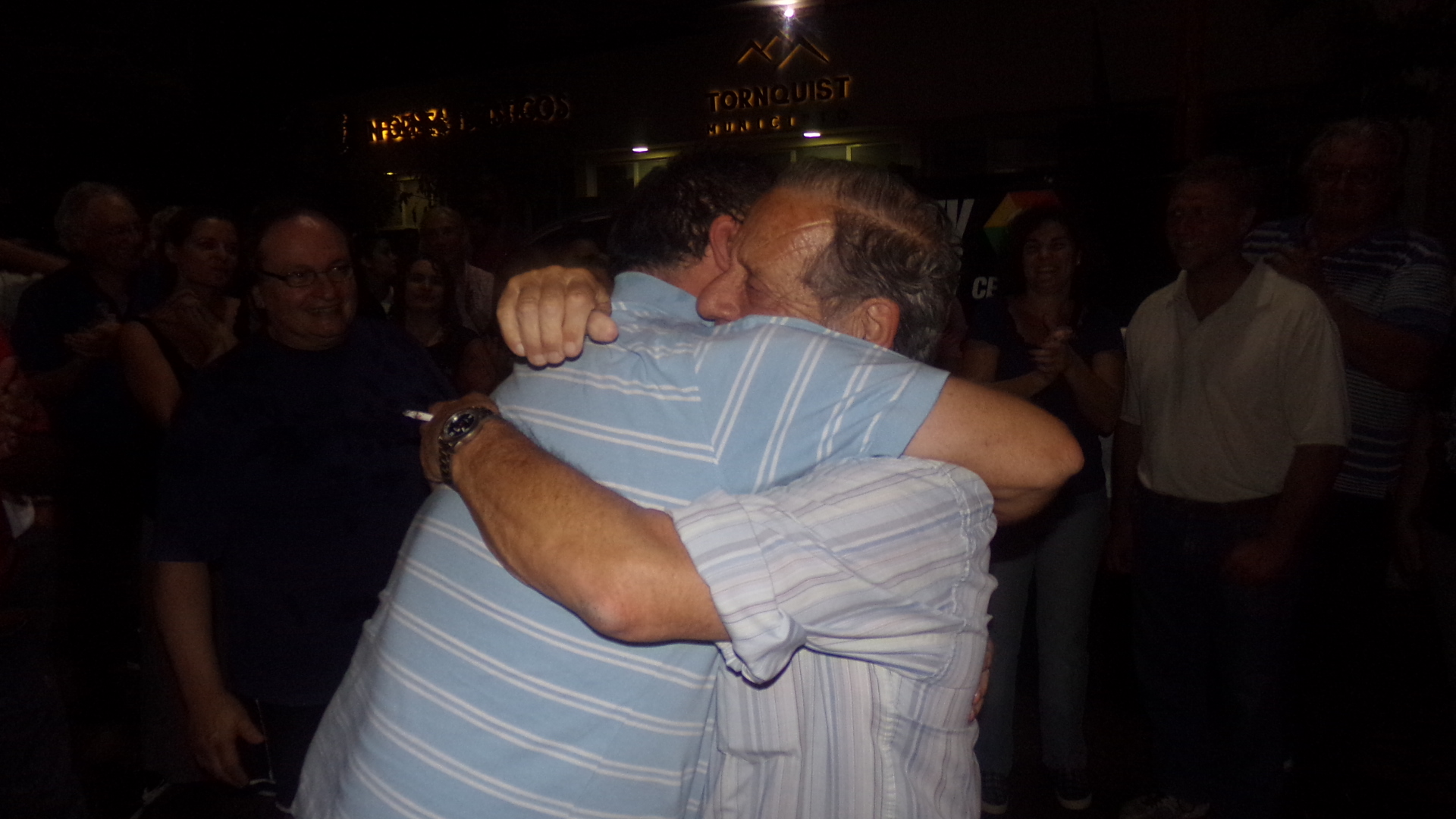 Un importante marco de público recibió en la noche de ayer a los concejales Federico Labarthe y Cristian Raising, ambos fueron puesto en libertad, mientras continúa el proceso sobre ellos, tras el allanamiento que realizó el fiscal Mauricio Del Cero el miércoles último en la agencia del INTA en Tornquist.