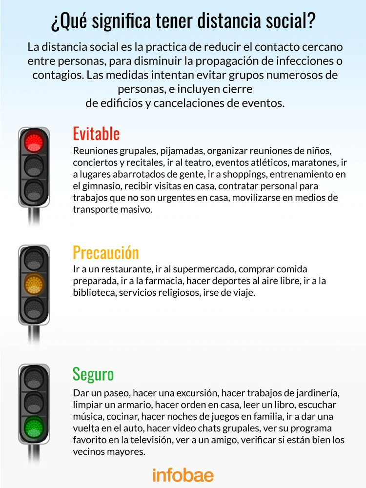 Pero, ¿por qué es importante esta medida? “El distanciamiento es vital para ayudar a la contención y es una obligación cívica que habla de solidaridad y de pensar en el principal objetivo, que es evitar la muerte de las personas mayores y demás grupos de riesgo”. El médico infectólogo Tomás Orduna (MN 61528) explicó a Infobae que “si bien la Argentina aún está en fase de contención, es elemental que toda la sociedad acompañe las medidas que dispuso el Gobierno”.