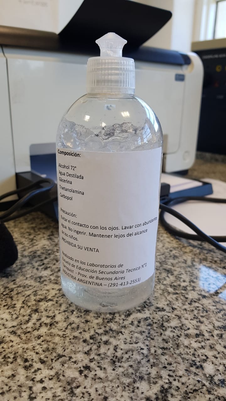 La EEST Nº 1 de Tornquist, se encuentra trabajando entre docentes y directivos para la elaboración de alcohol en gel.