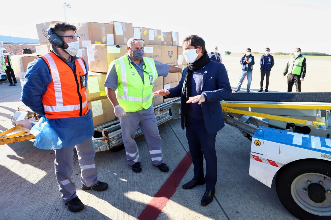 “Ante la escasez de insumos comenzamos a explorar posibilidades y a trabajar para habilitar una ruta aérea con China para abastecernos”, explicó el Gobernador y detalló que “nuestra vocación siempre es priorizar al trabajo nacional pero en este caso necesitábamos millones de barbijos que no se consiguen en Argentina”.