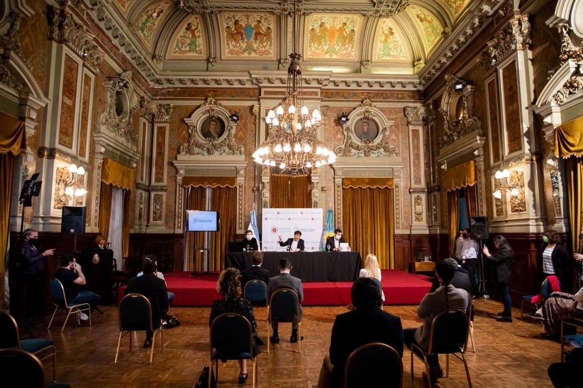 El gobernador de la provincia de Buenos Aires, Axel Kicillof, presentó esta mañana el Plan de Impulso Productivo, un paquete de medidas para acompañar a los distintos sectores económicos en el marco de la emergencia sanitaria. Realizó el anuncio, en Casa de Gobierno, junto al ministro de Producción, Ciencia e Innovación Tecnológica, Augusto Costa, y el presidente del Banco Provincia, Juan Cuattromo.