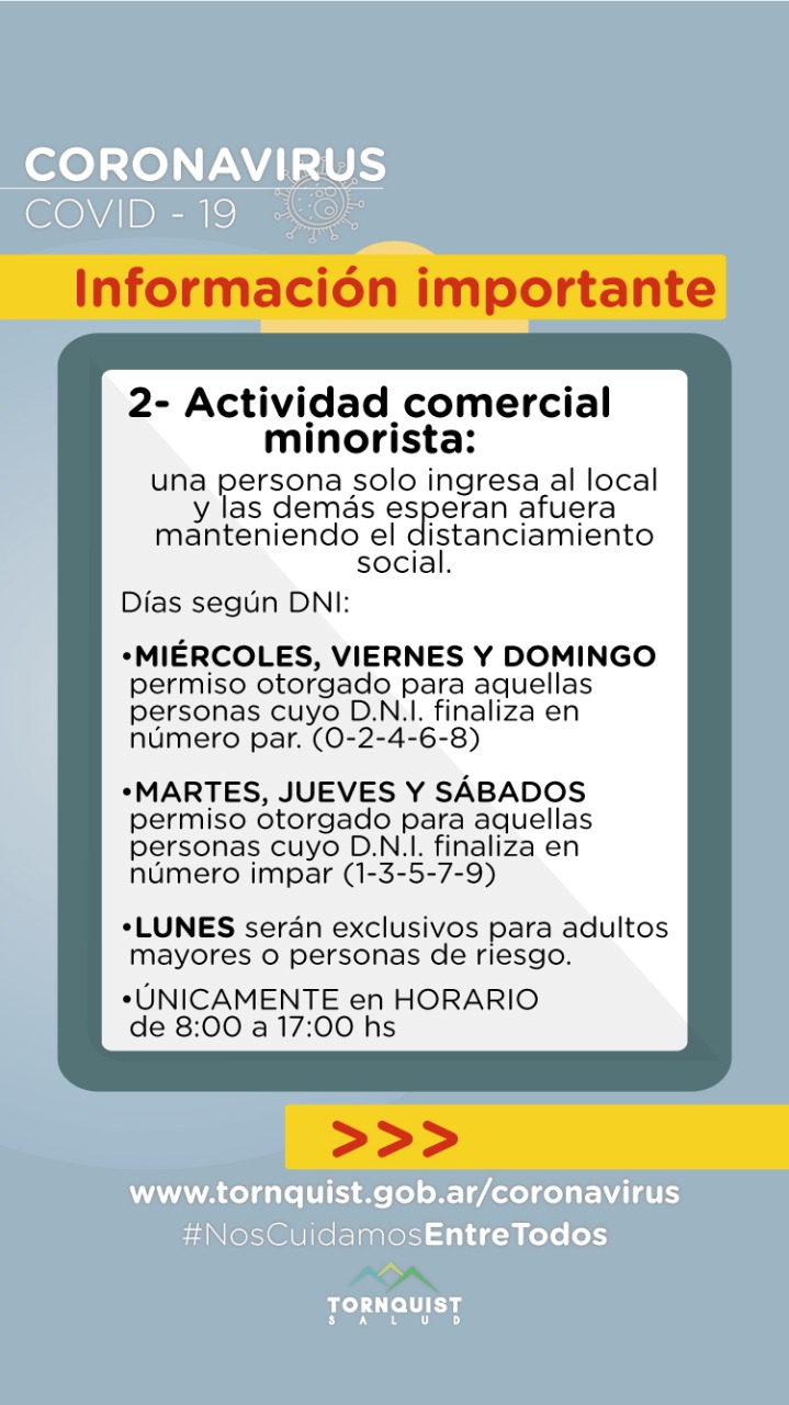 Asimismo reforzamos que el horario habilitado para mantener las puertas de los comercios abiertas es de 8 a 17hs, con el fin de evitar aglomeración de personas.