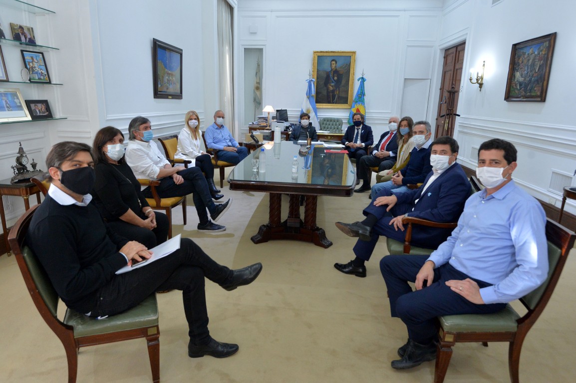 Kicillof señaló que el objetivo de la reunión fue “coordinar aún más el trabajo que se viene haciendo entre todos los niveles de gobierno, para reforzar la presencia de los comités de emergencia en los barrios de la Provincia” y agregó: “Es muy difícil pensar en flexibilizar cuando estamos ante un crecimiento de casos”