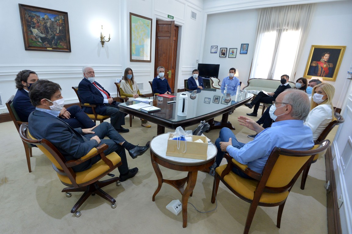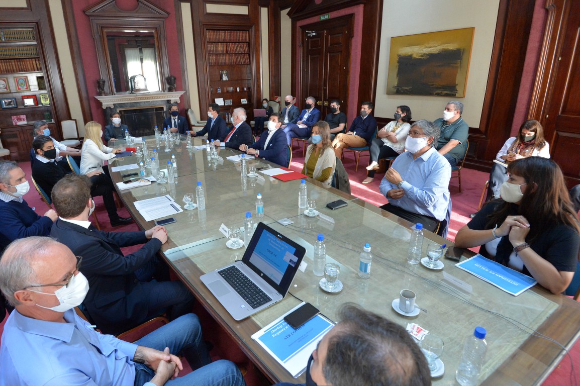 Esta tarde, en la Casa de Gobierno de La Plata, se realizó un encuentro entre los Comités Operativos de Emergencia (COE) de la Nación y la Provincia encabezado por el gobernador Axel Kicillof y el Jefe de Gabinete nacional, Santiago Cafiero, con la presencia vía teleconferencia de los 135 intendentes de la Provincia.